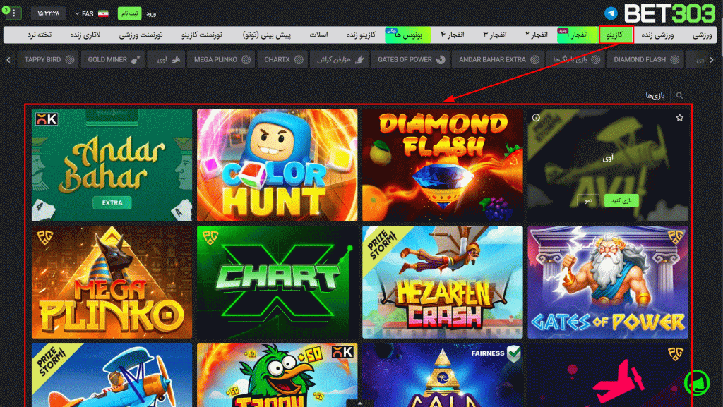 این سری از بازی ها محبوب ترین بخش بت ۳۰۳ است و با ضرایب متغیر و سرعت بالا، فرصتی برای کسب سود سریع فراهم می کند.